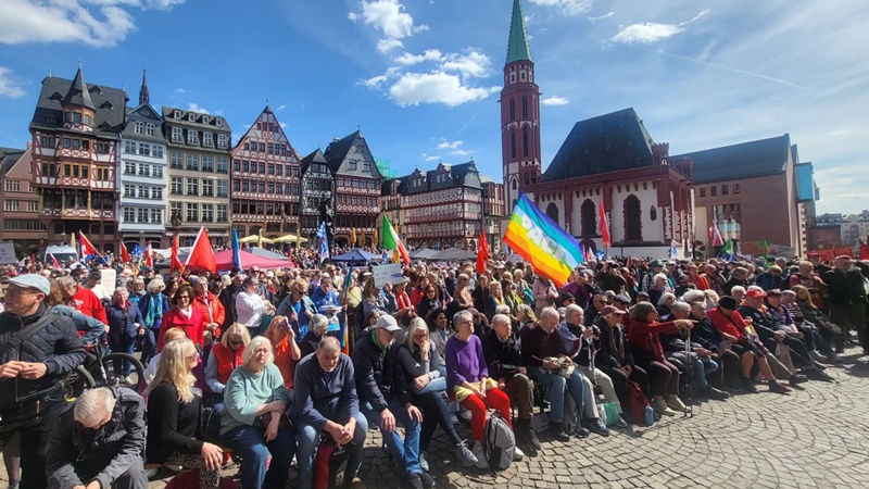 Barış eylemlerinde en büyük katılım, paskalya bayramının son gününde Frankfurt’ta gerçekleştirildi. Organizatörler kentin çeşitli yerlerinden ve komşu kentlerden Frankfurt’un ortasındaki Römer Meydanı’na yürüyen ve oradaki mitinge katılanların sayısını yaklaşık beş bin kişi olarak açıkladı. Stuttgart’taki eyleme de dört bin kişinin katıldığı açıklandı. Münih, Berlin, Hamburg, Köln, Nürnberg, Duisburg’daki eylemlerde de binin üzerinde katılım oldu.