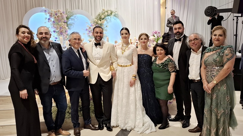 Frankfurt güzel Dila ile Şah Ali’nin mutluluklarına tanıklık etti. Gençlerin Hattersheim’deki düğününe Frankfurt ve çevresinden siyasi, kültür, inanç ve ekonomi dünyasının üst düzey insanlarının da yer aldığı yaklaşık 800 kişi katıldı. Almanya’nın ilk Türk kadın noteri Elif Burcu – Karakoç ile İbrahim Karakoç’un biricik kızları Dila ve Dersimli iş insanı Ali Ekber Ayrıç ile Songül Ayrıç’ın oğulları Şah Ali’nin düğünleri muhteşem oldu. Dila, Hessen eski Milletvekili Taylan Burcu’nun yeğeni, Bundesliga ekibi Union Berlin’in oyuncusu Livan Burcu’nun da kuzeni. Her ikisi de düğünde yer aldı. Düğüne ayrıca Yukatel CEO’su Yusuf Karataş, Tayvan Bankası CEO’su Banu Özcan, Atiyab Onursal Başkanı Ertan Köse, Atiyab Eş Başkanı Hatice Çavuş, Atiyab yöneticileri, iş insanları Avni ve Sevinç Yerli, Abbas Dağlık ve ailesi, Hamdi Çetinkaya ve eşi, Joys Club üyesi iş kadınları, Hessen Eyalet Milletvekili Turgut Yüksel, Frankfurt Belediye Başkanı Narges Eskandari Gürünberg, Frankfurt İl Genel Meclisi Başkanı Hılime Arslaner, Rüsselsheim Belediye Başkanı Murat Karakaya, Hessen eski Milletvekili Mürvet Öztürk, Heusenstamm eski Belediye Başkanı Halil Öztaş, Frankfurt Belediye Meclisi Üyesi Hüseyin Sıtkı, sanatçı Mikail Arslan ile çok sayıda avukat da katıldı.