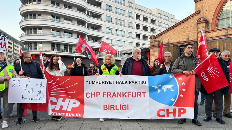Frankfurt’ta “İmamoğlu’na Özgürlük! Sivil darbenin birinci yılında irademize ve demokrasimize sahip çıkıyoruz!“ çağrısıyla düzenlenen eylemde İmamoğlu’nun ve CHP’nin Yurtdışı Örgütlenmeden Sorumlu Genel Başkan Yardımcısı Nurhayat Altaca Kayışoğlu’nun mesajları da okundu.