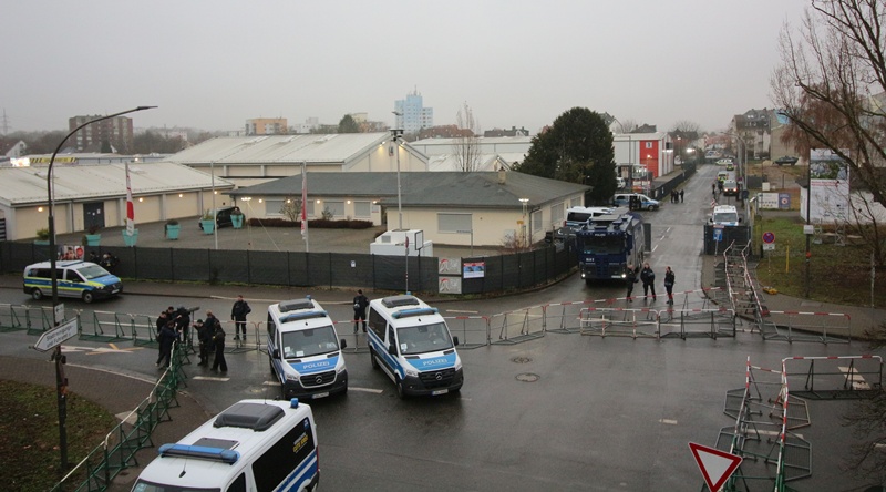 Emniyet birimleri, çevre eyaletlerden binlerce polisin de desteğiyle, aşırı sağcıların toplantı yapacağı Giessen Fuarı, Hessenhallen çevresini tomalar ve barikatlarla bir gün öncesinden araç ve yaya trafiğine tamamen kapattı. Polis, Giessen Fuarı yakınından geçen Lahn nehri üzerinde de devriye gezerken kentte 6 bin kadar emniyet mensubunun görev aldığı öğrenildi. Emniyetin tomalar ve ekip araçlarının yanısıra, atlar, köpekler, dronlar ve helikopterleri de kulandığı görüldü. Kent merkezinde dükkanların büyük bölümü kapalı kaldı.