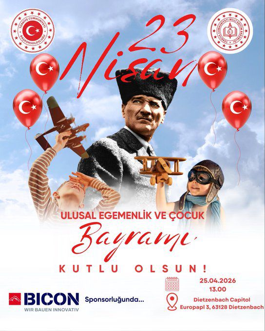 Frankfurt ve çevresi için geniş katılımlı “Ulusal Egemenlik ve Çocuk Bayramı” kutlaması cumartesi günü Dietzenbach Capitol Etkinlik Merkezi’nde düzenlenecek.